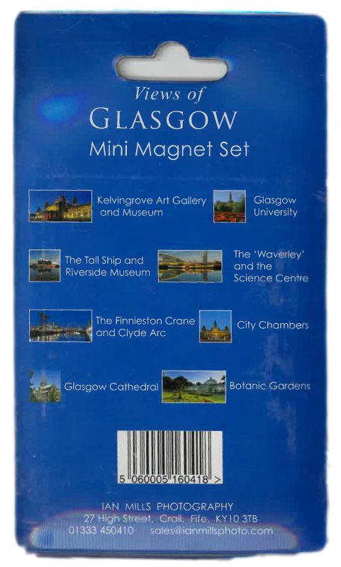 Mini Magnet Pack, featuring 8 epoxy fridge magnets with Ian Mills photographs of Scotland. Supplied as a blister pack with Euro slot. Display options available