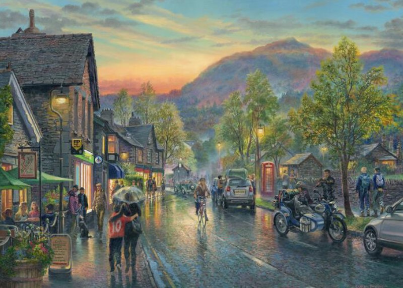 A quintessential scene as the glow of Grasmere village reflects in fresh rainfall at dusk. This beautiful jigsaw will be a wonderfully relaxing puzzle to solve.