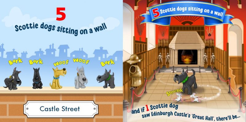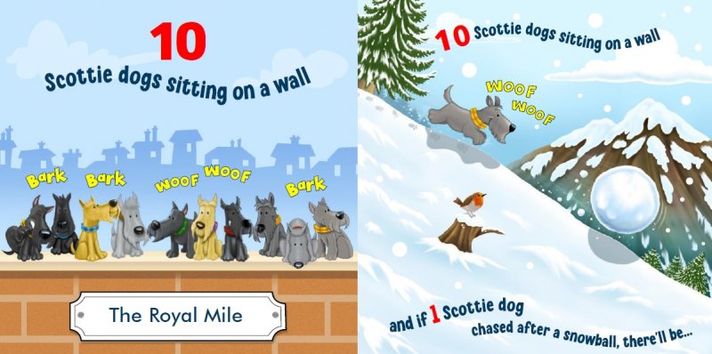 A favourite counting rhyme with a Scottish twist! Sing along with 10 busy Scottie dogs doing all sorts of fun things... and discover a surprise at the end!
