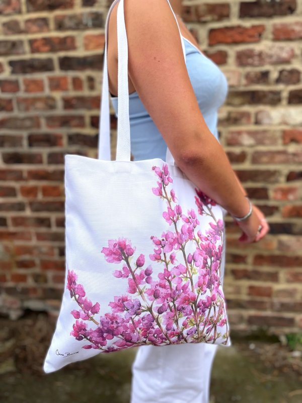 Luxury tote bag featuring the modern and bright watercolour illustrations of Scottish artist Clare Baird. The bags are 100% cotton and feature the Scottish heather design. A perfect Scottish gift!