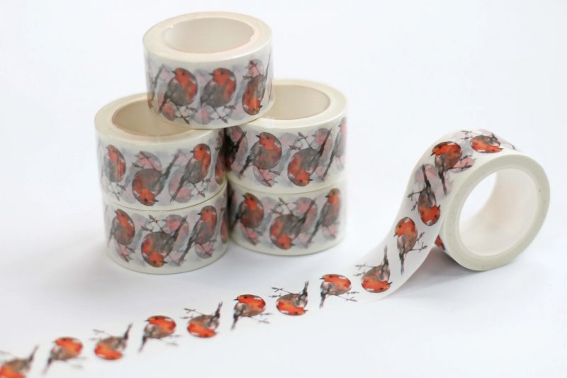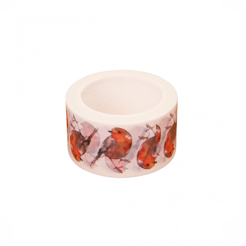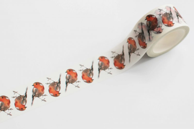 Colourful, pretty and decorative washi tape for crafting projects featuring beautiful robins painted by Scottish artist Clare Baird.