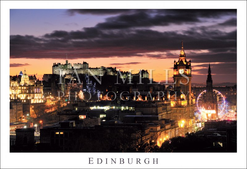 Edinburgh - Castle, Balmoral, Festive Postcard