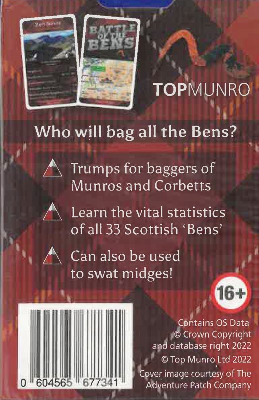 Who will bag all the Bens? Trumps for baggers of Munros and Corbetts and learn all the vital statistics of all 33 Scottish 'Bens' - can also be used to swat midges!