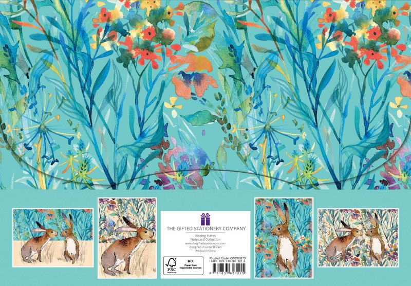Contains 20 notecards across 4 designs, each notecard is blank inside and accompanied by a white envelope.