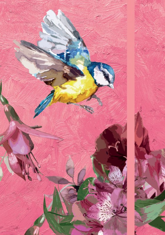 Flexi-bound notebook with lined pages, colour printed on side edge and elastic closure.
